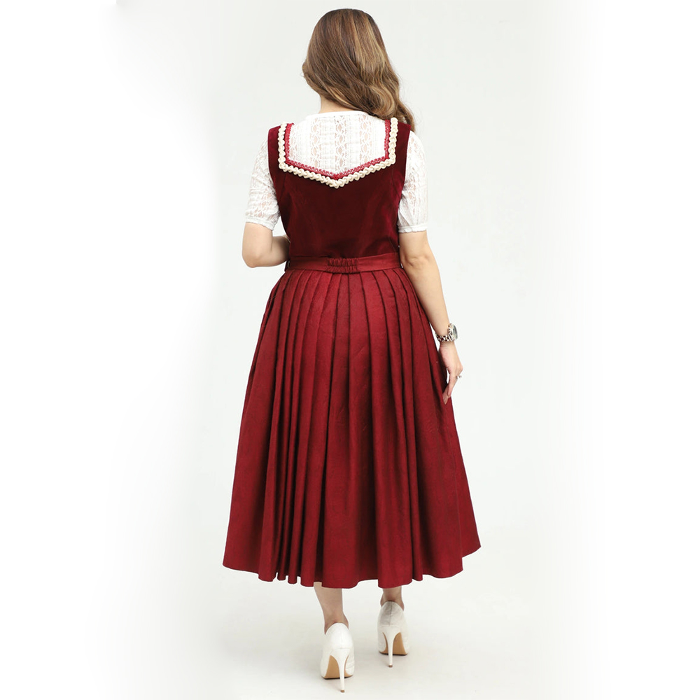 • The Skirt (Rock): The skirt of a red dirndl is typically a magnificent swirl of color. The fullness of the skirt is emphasized when the wearer moves or dances, creating a dynamic and captivating visual effect.