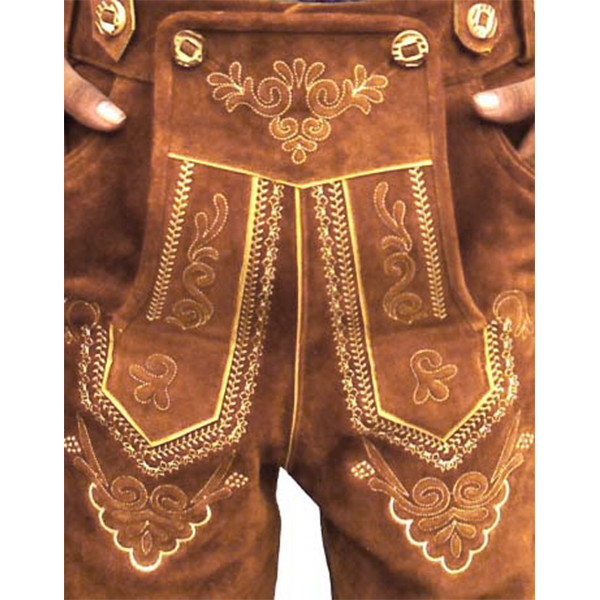 Classic Traditional Bavarian Brown Lederhosen with Embroidery: