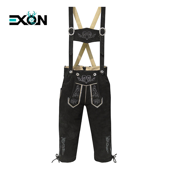 these lederhosen offer a sleek and bold appearance while maintaining the rich authenticity of Alpine design. The German deep black tone adds a touch of sophistication, making this piece perfect for those who want to stand out at Oktoberfest or any cultural celebration.
