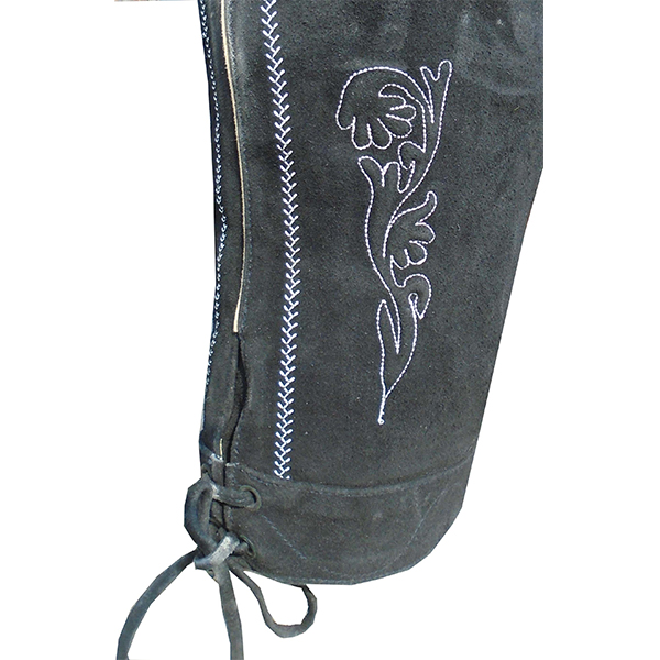 Detailed with traditional German embroidery on the front flap, leg panels, and suspenders, this garment honors old-world craftsmanship while offering modern comfort.